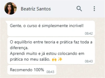 Além das aulas teóricas, o curso oferece dicas práticas e suporte contínuo, garantindo que você se sinta seguro e confiante em cada etapa da sua jornada profissional. Prepare-se para transformar sua paixão pelo Mega Hair em uma experiência gratificante e bem-sucedida.